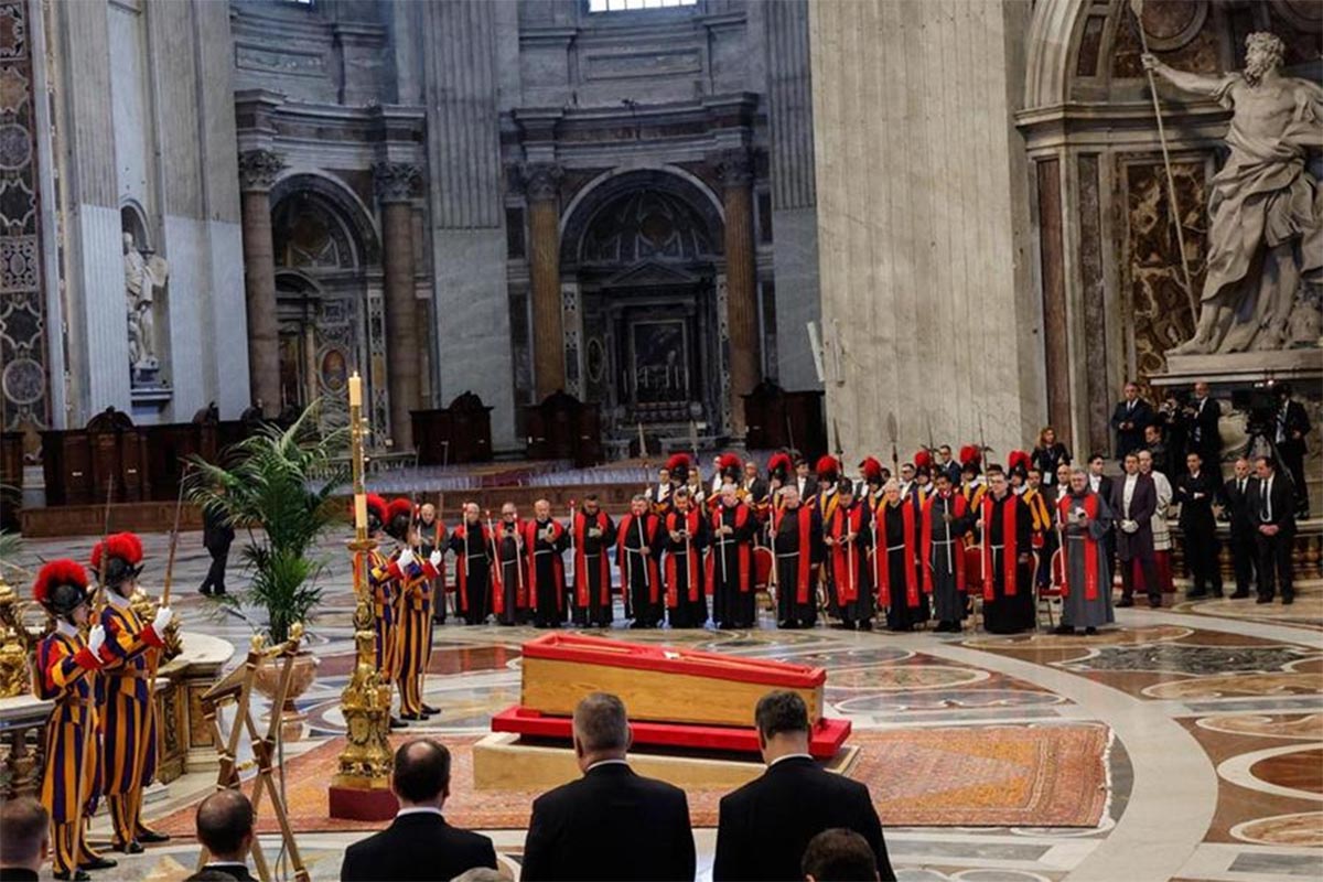 En tanto miles de fieles aguardan pacientemente en una larga fila frente a la Basílica de San Pedro para darle el último adiós al Papa Francisco, según informó la Oficina de Prensa del Vaticano.